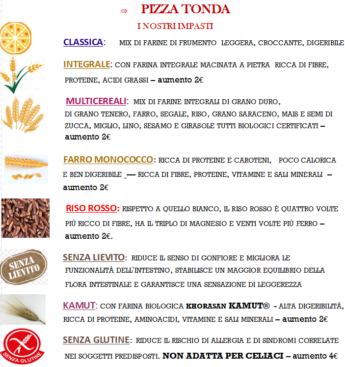 si possono sceglere sino a tre farciture differenti dall'elenco delle pizze classiche.
