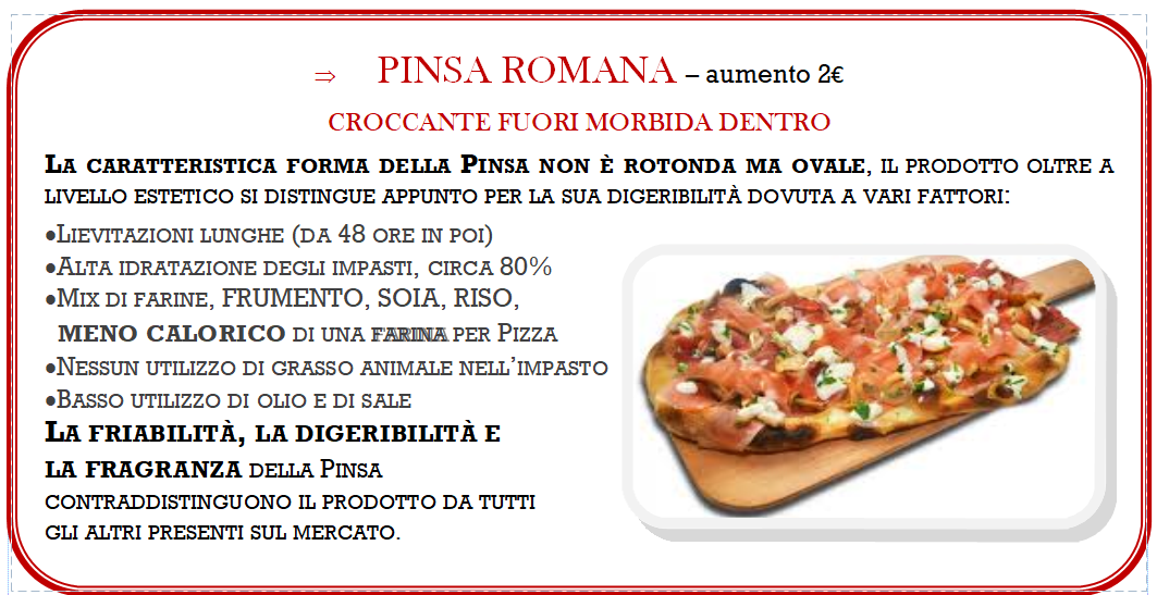 - 1 pinsa romana farcitura gourmet (con Patanegra aumento 6€)